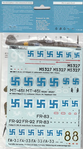DECALCOMANIES AML 48022 IN FINNISH AIR FORCE SERVICE