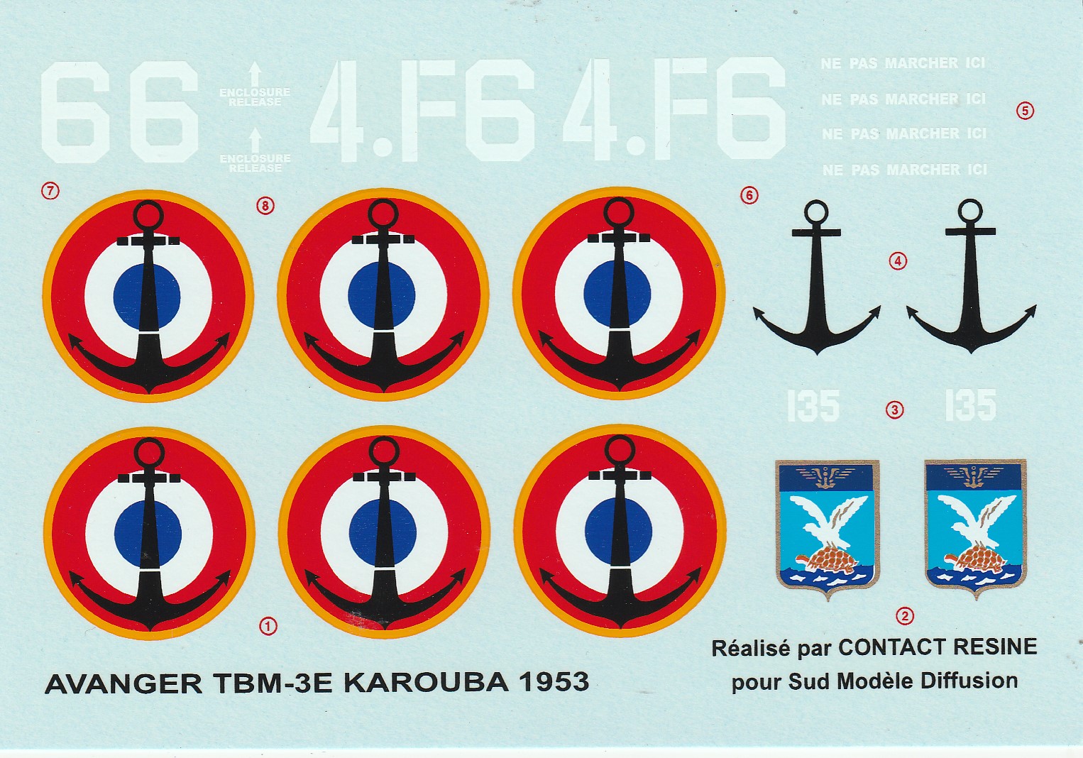 DECALCOMANIES CONTACT RESINE CR-004 AVANGER TBM-3E KAROUBA 1953